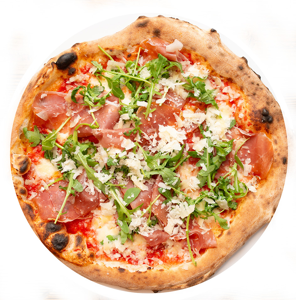 PIZZA MIESIĄCA 2Pizza Napoletana PIZZA MIESIĄCA 2 plen PARMA 53zł dostępna od piatku do niedzieli sos pomidorowy, mozzarella, 30-miesieczna szynka parmeńska, rukola, 24-miesięczny pamezan